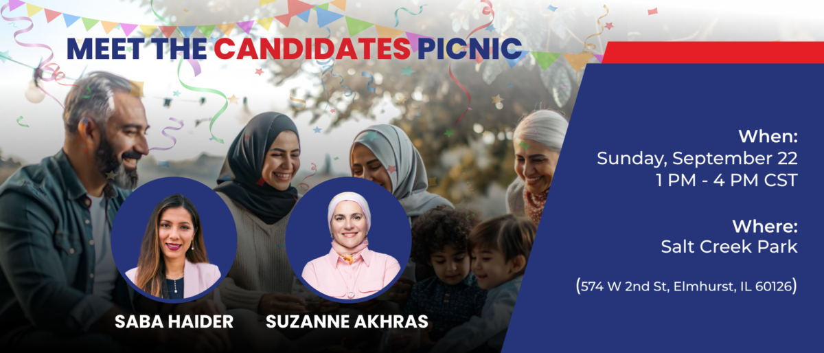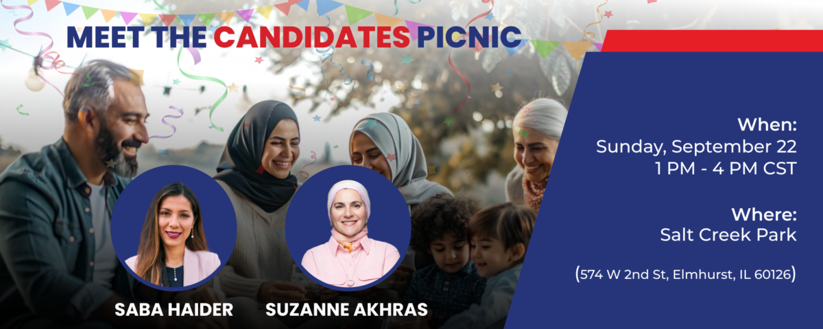 Let’s come together for a day of fun on September 22 at Salt Creek Park! This event is your chance to meet Saba Haider, and Suzanne Akhras, the candidates for the upcoming elections.